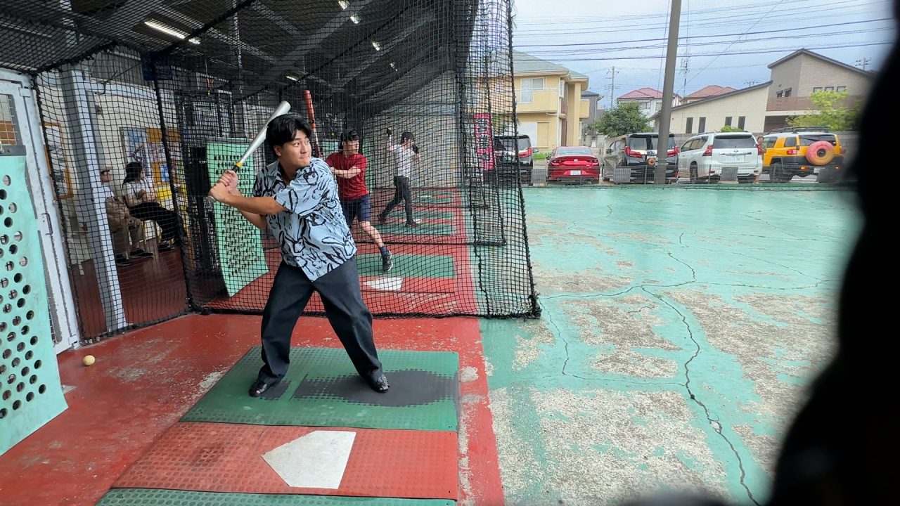 「café すいかずら」で熱烈歓迎を受けながら飲み物をテイクアウトして3人が向かったのは、「流山バッティングセンター」。ここで本日の旅の代金を誰が支払うか決めるゲームをすることに。