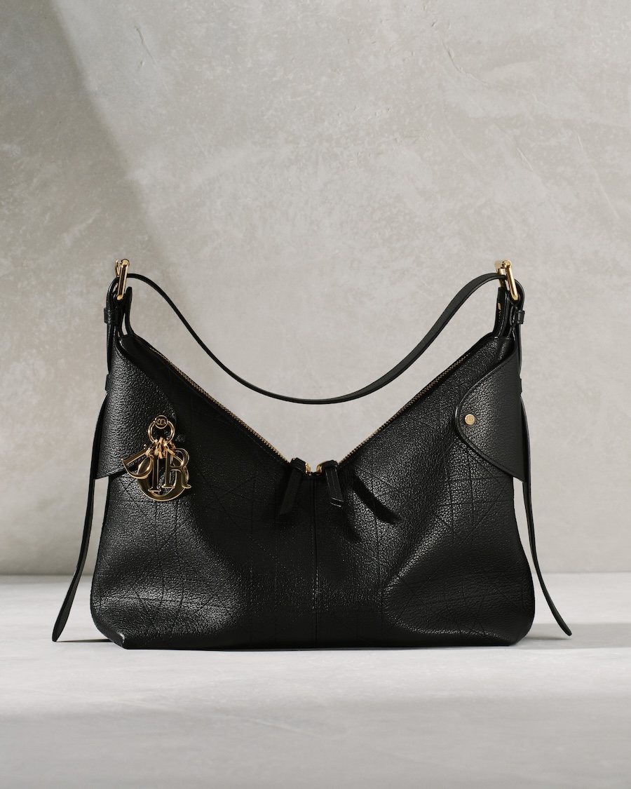 艶めくレザーに「フラット マクロカナージュ」ステッチで立体感と気品をプラス! ゴールドトーンのD.I.O.R.チャームが歩くたびにキラキラ揺れて、フェミニンで大人っぽいアクセントを添えれくれる。どこか余裕を感じさせる、クタッと柔らかなホーボーシルエットが、コーデに今っぽいこなれ感をオン。クラシックとモダンを行き来する、このバランス感がたまらない♡