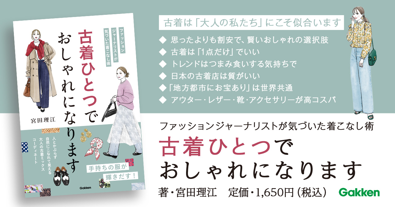そんな“大人の私たち”にこそ手に取ってほしいのが、10月23日(木)に株式会社Gakkenから発売された、ファッションジャーナリスト/ディレクター・宮田理江さんの書籍『古着ひとつでおしゃれになります』。