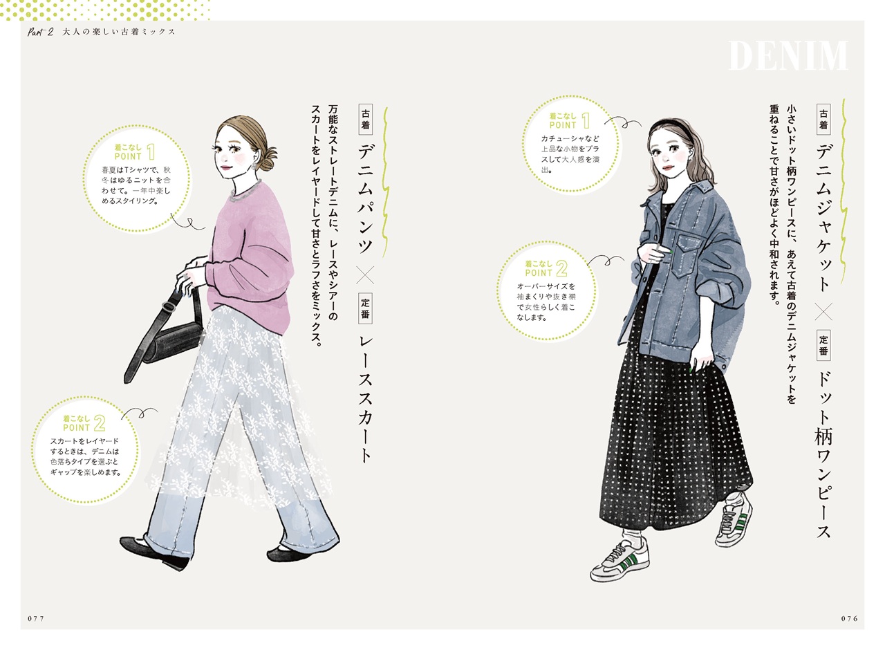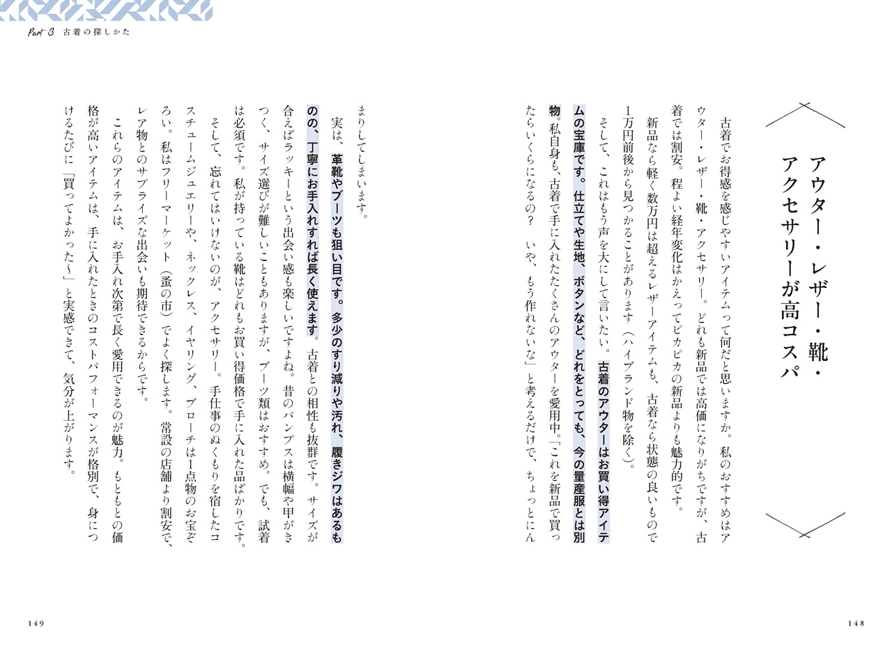 ご紹介した他にも、シーン別のコーディネートアイデアや、古着のメンテナンス法、お気に入りの1着の探しかたなど、「古着」を楽しむための情報がぎゅっと詰まった1冊。続きや詳しい内容が気になる方は、ぜひお近くの書店でチェックしてみてくださいね!