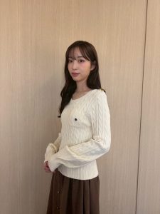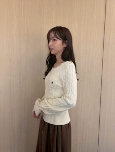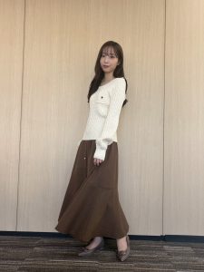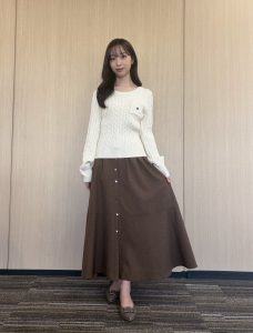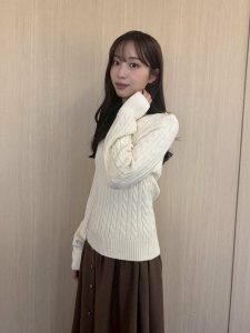 • 【写真10枚】お天気キャスター・林佑香さんのケーブルニットで柔らかく上品な淡色コーデ【10月23日分】