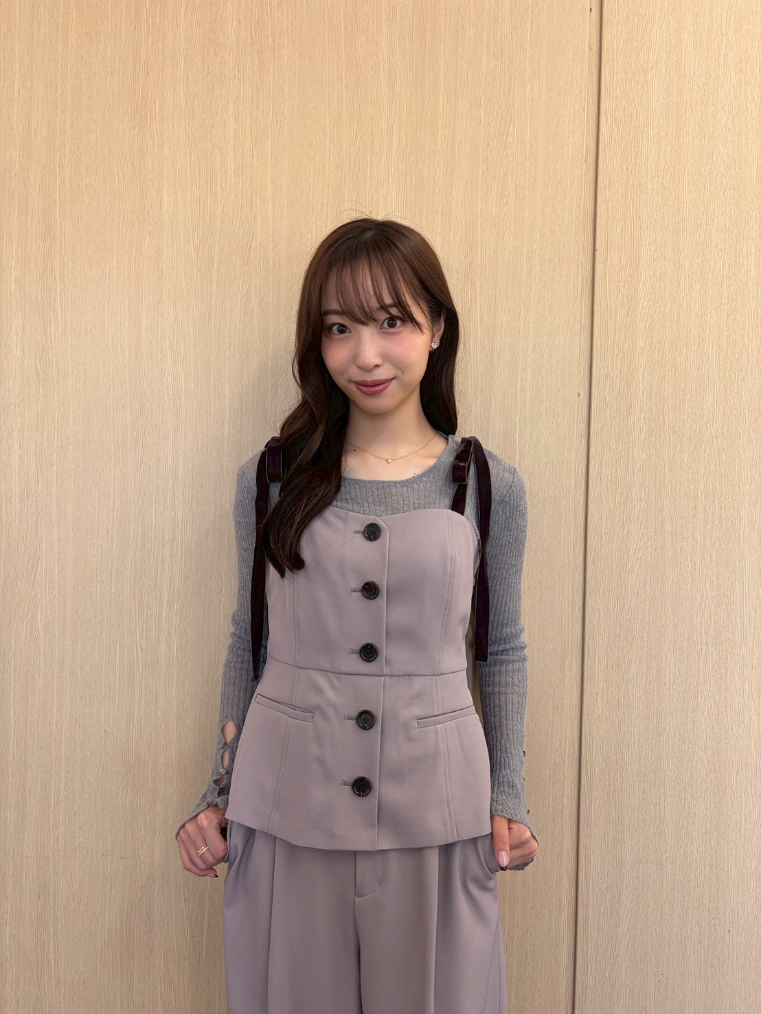 ■10/28(火)/グレーニット×リボンビスチェ×パンツ