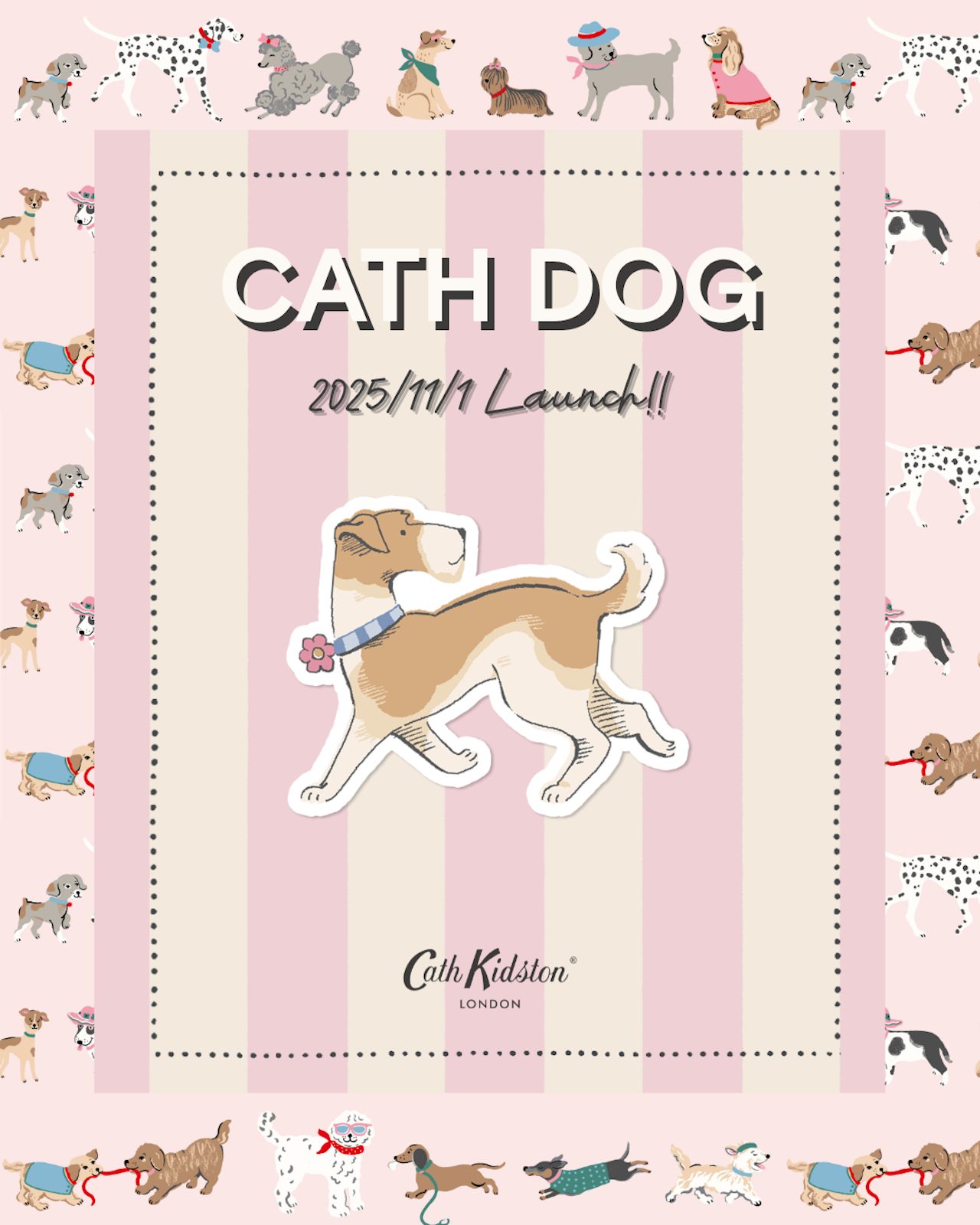 ドッググッズは〝犬の日〟である11月1日に、Cath Kidston 表参道店と公式オンラインストアにて発売開始。11月7日からはコクーンシティ さいたま新都心店で発売するほか、11月7日から11月30日までの期間限定で、京都ポルタ店、ルクア大阪店、天神地下街店でも展開。早速、気になるラインナップをお見せします!