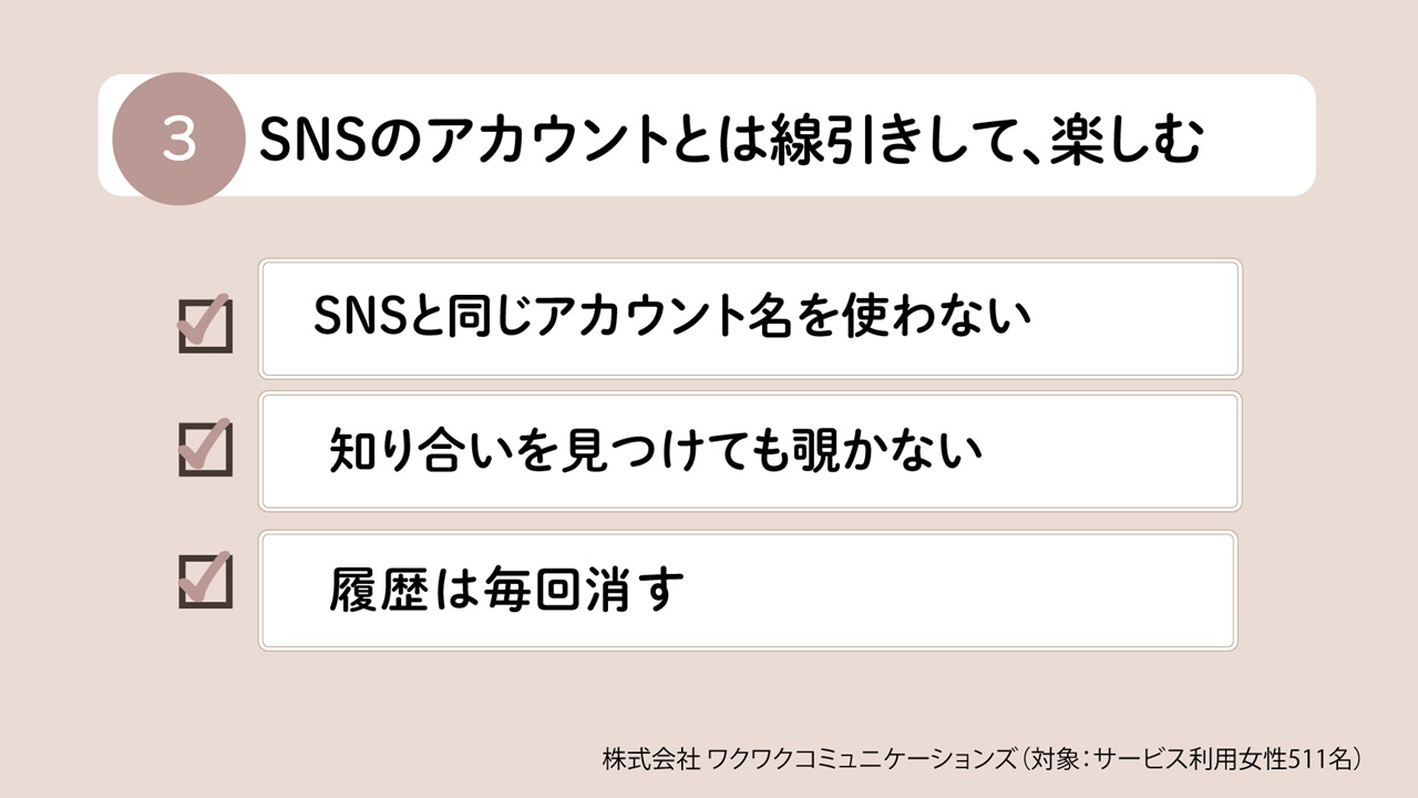 身バレを防ぎつつ、素敵な出会いを見つけている人たちはどのような工夫をしているのでしょうか? 恋活成功者たちが実践している3つのルールをチェック!