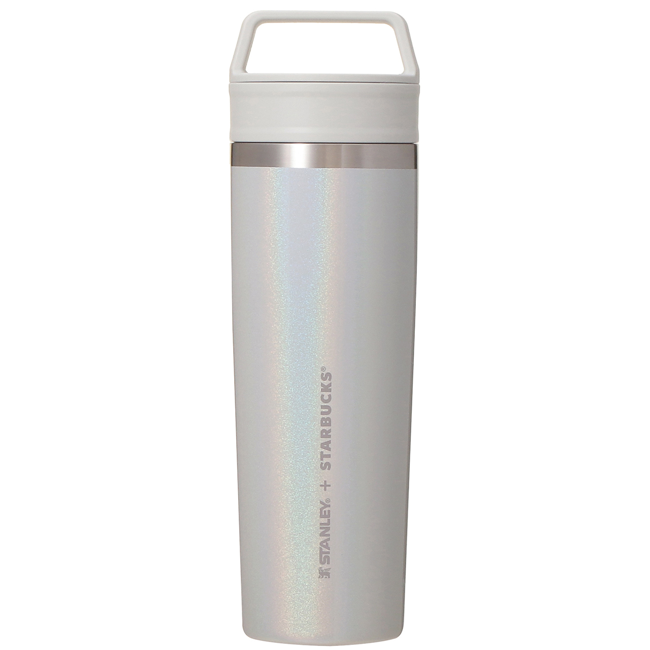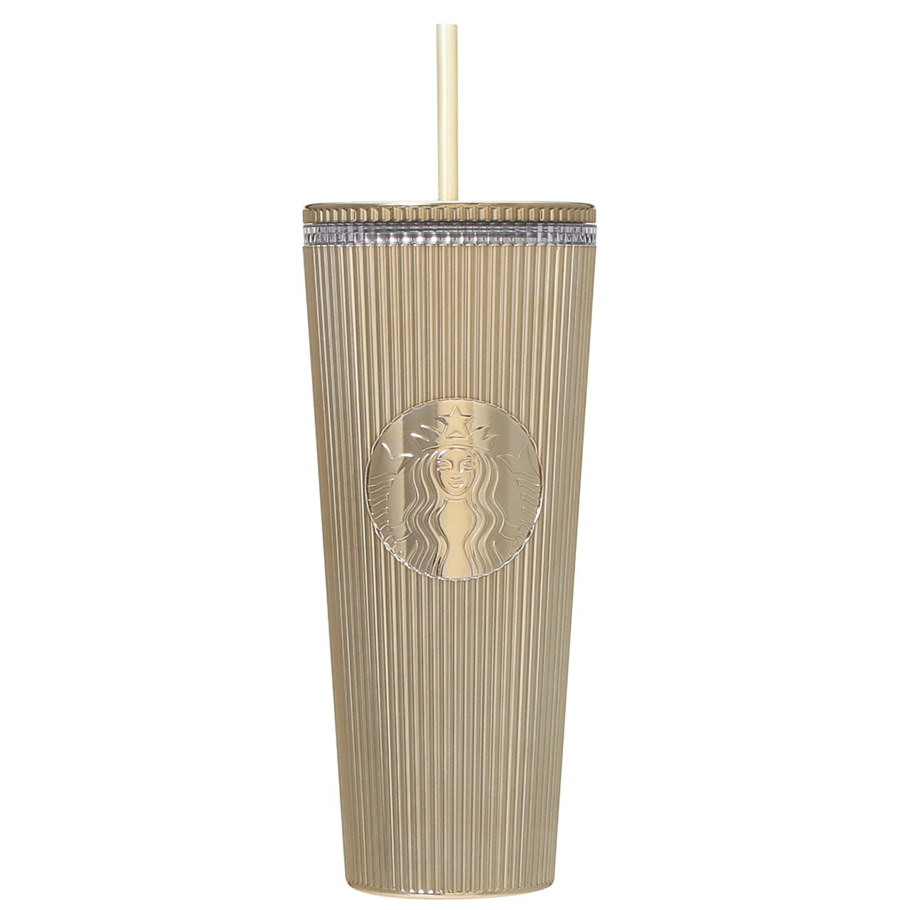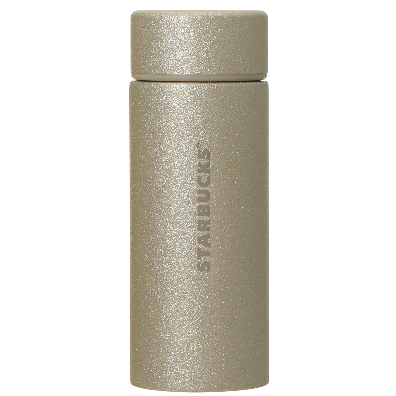 リッドを含む全面がシャンパンゴールドのグリッターできらめくステンレスボトル。華やかなカラーながら、STARBUCKSのワードロゴがレーザー加工で表現されたシンプルなデザインで大人っぽさも◎。