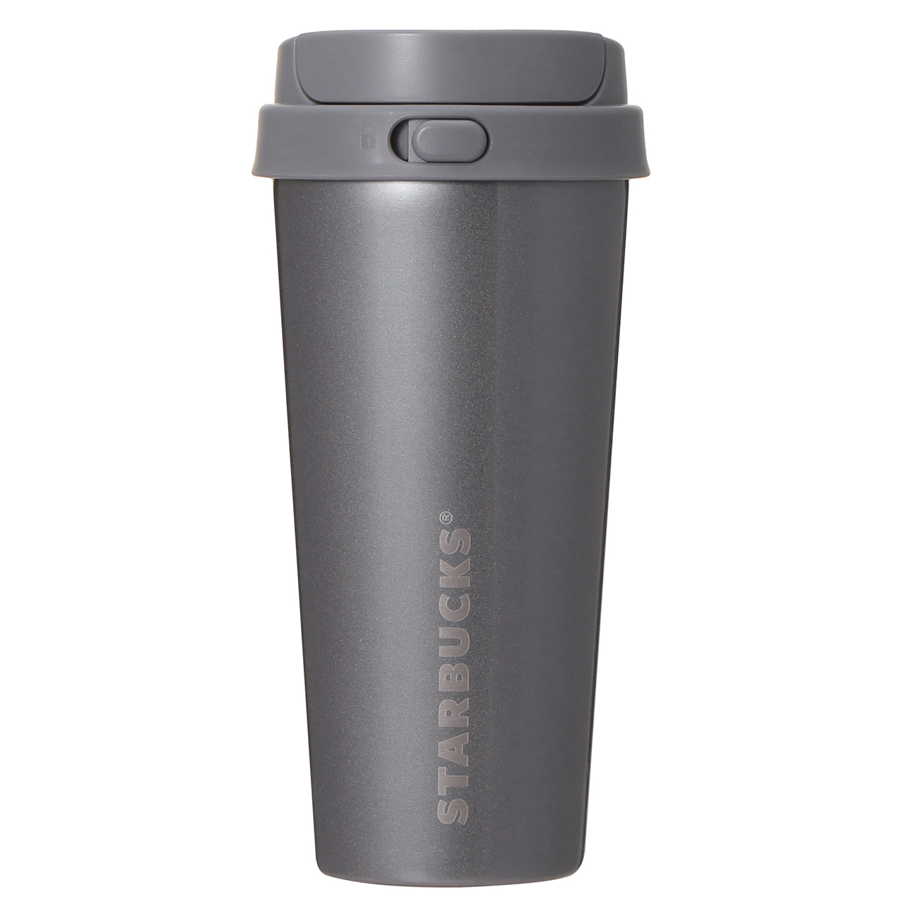 リッドにロック機能がある、スターバックスらしいカップ形状のステンレスボトルです。メタリックグレーのボディがスタイリッシュなデザインで、家族やパートナーとのシェア使いもおすすめ♪
