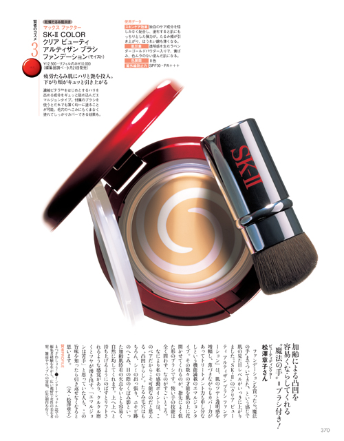 濃縮ピテラTMをはじめとする、ハリを高める成分をギュッと詰め込んだエマルジョンタイプ。肌のツヤ感を透明感を増幅し、薄づきながらもカバー力&トリートメント力が申し分ないほど機能満載! 誰でも薄く均一に塗ることができるブラシも高ポイント。毛穴の凹みにもくまなく塗れて、加齢肌特有の欠点も自然にならしてくれます。