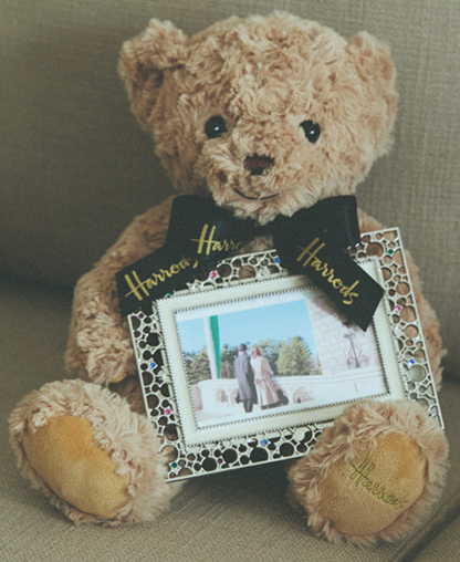/ロンドンのHarrodsで買ったくまのぬいぐるみは大事に飾っています!\