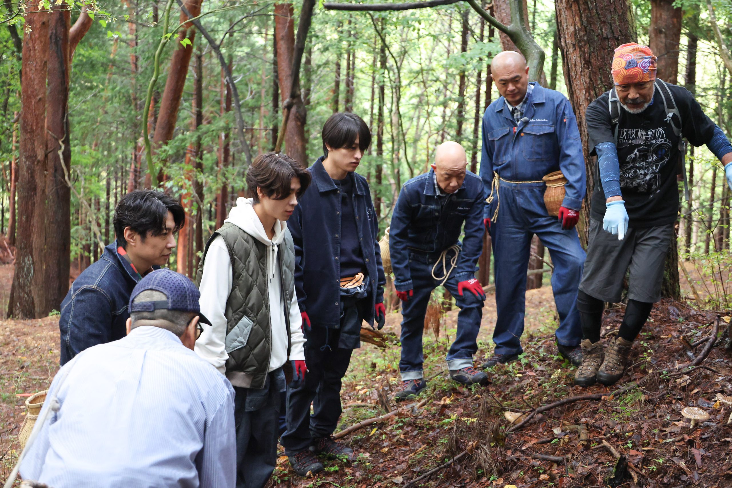 その後も引き続き、強いまなざしで地面を見つめ、手作業で松茸を探し続ける一同ですが、徐々に不穏な空気が…。名人いわく、今年は例年より雨が少なかったせいで、収穫のベストタイミングは1週間後。松島さんは「僕、1週間後のスケジュール空いてますか?」とスタッフに尋ねるほど前のめりに!? しかし相葉さんは「聡ちゃんと猪俣くんは《持ってない》ということで…」とダメ出し! 「ちょっと待ってください! 《持って》ますって!」と、2人の落ち葉をめくる手はさらに進むのでした!
