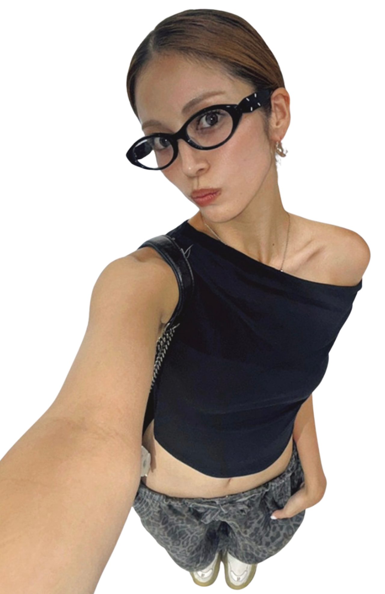 自撮りは左側ちょい斜め上がカメラのベスポジ! 左顔が利き顔なので、腕を伸ばして少し服も入れる角度が多いです。