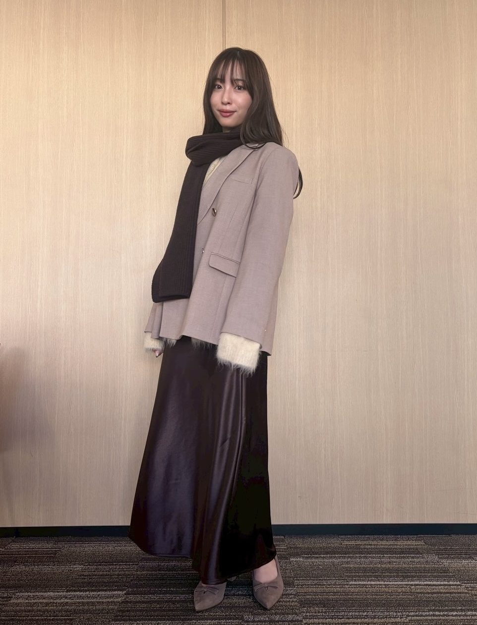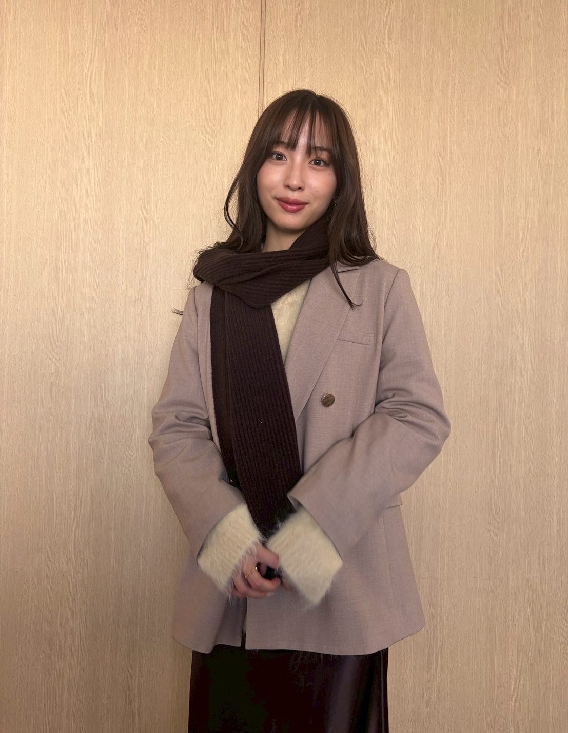 ■11/19(火)/ベージュジャケット×ブラウンスカート