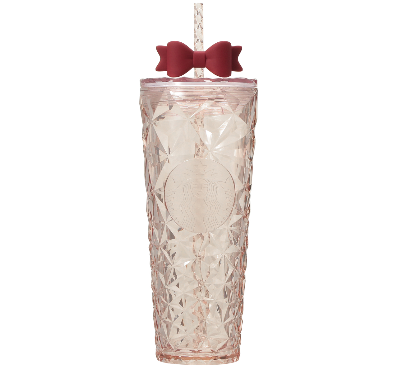 光を受けるたびにキラキラと輝く、冷たいドリンク専用タンブラー。ストローにはかわいらしいリボンのアクセサリー付きで毎日にときめきを添えてくれるデザイン。大容量の710mlサイズで、ドリンクがたっぷり入るのも嬉しい!