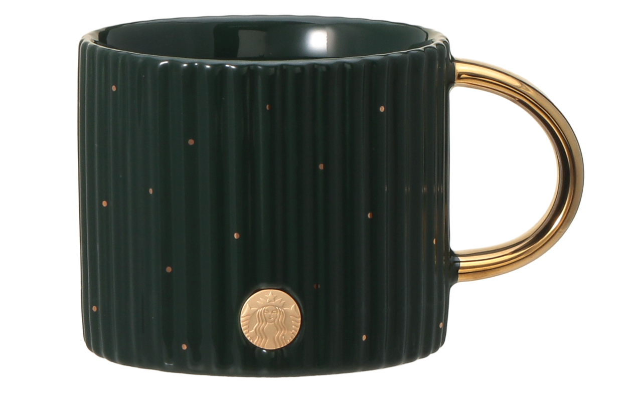 ゴールドのハンドルやサイレンロゴをエンボスで表現したメダルの他、本体全面にゴールドのドットがきらめくホリデーシーズンにぴったりのマグです。