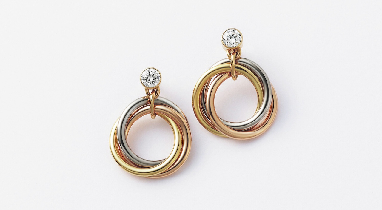 世界中の王室御用達メゾンであり、世界5大ジュエラーのひとつとしても名高いカルティエ。時代を先取りする革新的なデザインと卓越した技術で数々のコレクションを生み出し、中でもフランス語で〝3つ〟を意味する「トリニティ」は、昨年100周年を迎えたタイムレスな名品。ピンク、イエロー、ホワイトの異なるゴールドが美しく重なり合うデザインで、それぞれ愛情・忠誠・友情という意味が込められているのも素敵!
