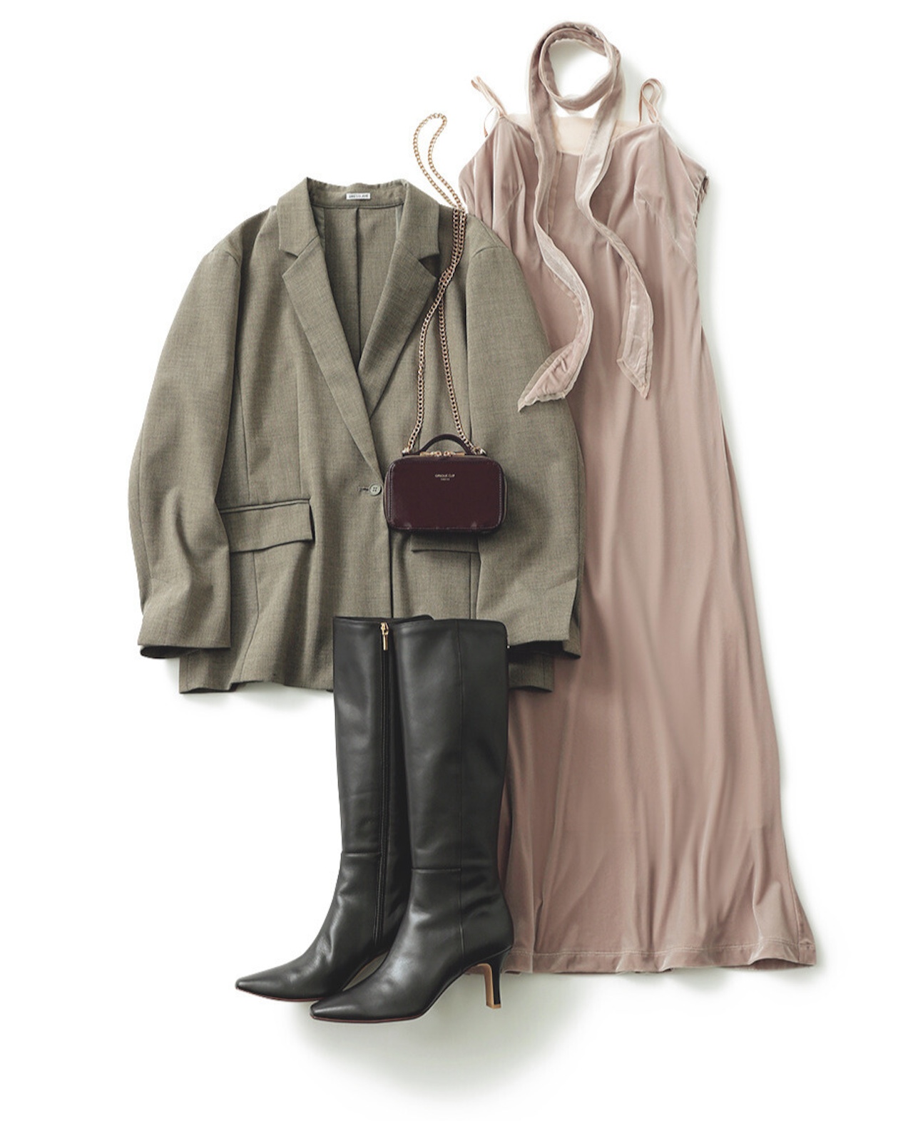 高貴なローズカラーがセンシュアルなワンピに上品なアクセントをプラス。