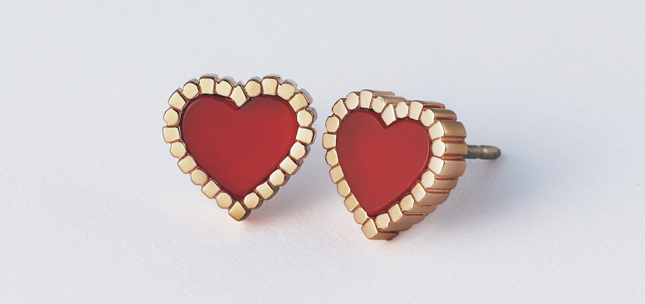 宝飾の都イタリア・ヴァレンツァで創業したダミアーニ。中でも注目なのは、「ベル エポック」の新作でもあるキャッチーなハートモチーフ♡ 映画フィルムのリールから着想を得たという、丸と四角モチーフのメタルが交互に配置された縁取りがモダンで、リズミカルなアクセントに。赤いカーネリアンにハートモチーフ、HAPPY感あふれるジュエリーは身につけるだけでポジティブなマインドを手に入れられる!