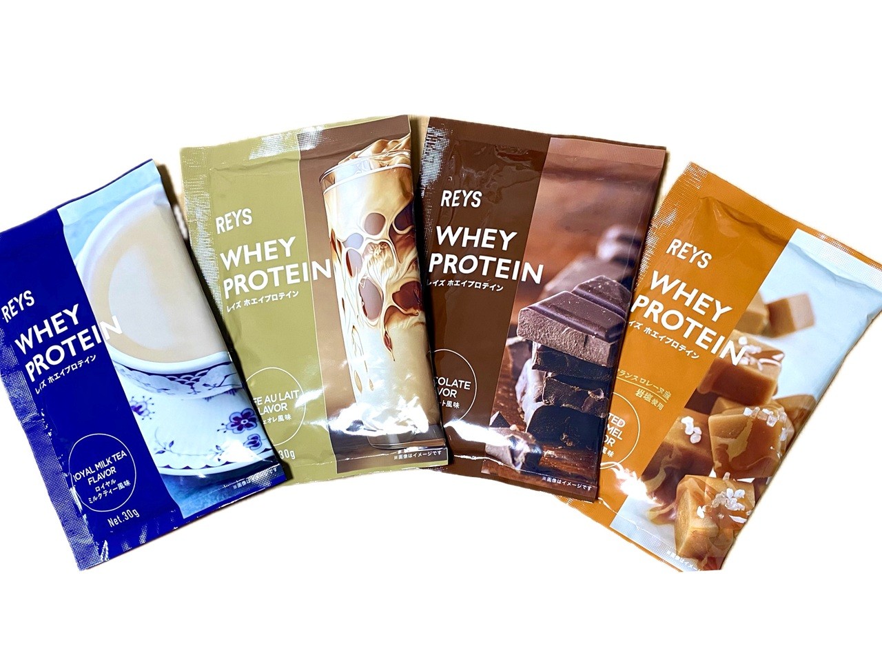 ちなみに私は、Amazonのレイズ公式ショップで購入できる『ホエイプロテイン お試しセット(個包装30g × 4種 カフェオレ/チョコレート/ロイヤルミルクティー/塩キャラメル)』をチョイスしました。1杯分を4フレーバー試せるので、まずは味を比べてみたい…という人にぴったり!