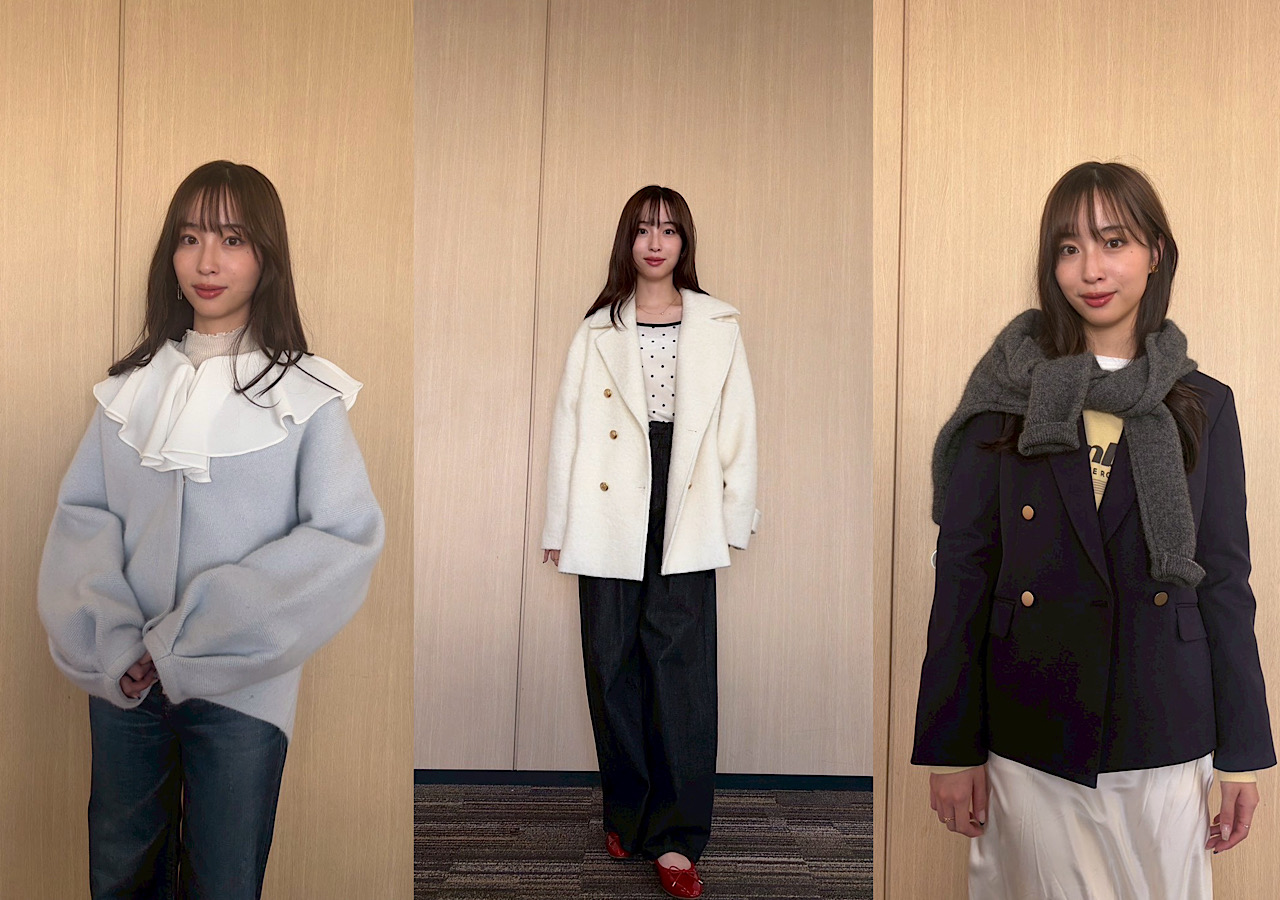 今週の林さんのコーデは、アウターのチョイスが参考になるものばかり。 お仕事シーンだけでなく、お出かけやデートの際にも参考にしてみてくださいね。