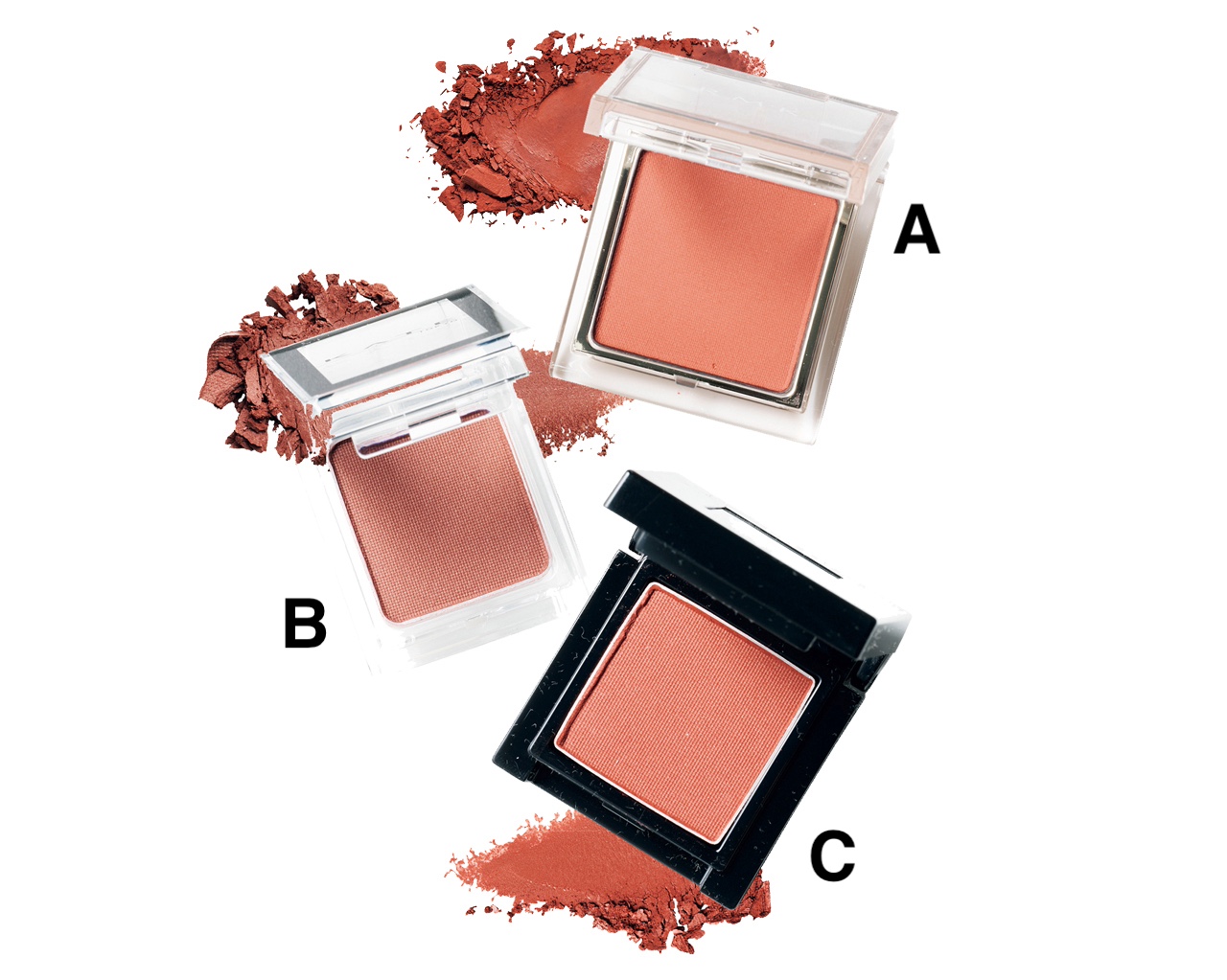 ①Aをやわらかいブラシにとり、アイホール広めにのせる。二重幅を気にせず大胆に入れるのがポイント。下まぶたにもすっと色をのせ、マットな単色で目周りを囲む。