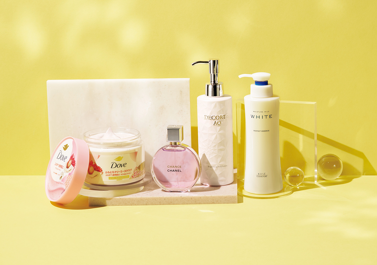 ボディアイテムも美白成分の入ったものが増え、顔だけでなく全身美白ケアの時代に突入! トーンアップに加えて、保湿やなめらかさなど、隅々までケアがいき届いた肌で自己肯定感もアップ♡