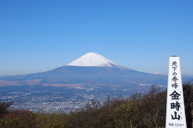箱根外輪山の一角にある金時山は、標高1,212mの絶景スポット。山頂からは富士山、芦ノ湖、大涌谷など360度のパノラマが広がります。初心者向けの登山道も整備され、冬は空気がクリアで富士山の眺望がより鮮明に。特に晴天の日は、富士山が間近に感じられるほどくっきりと見ることもできますよ。下山後は箱根温泉で癒やしのひとときを過ごせるのも魅力的!