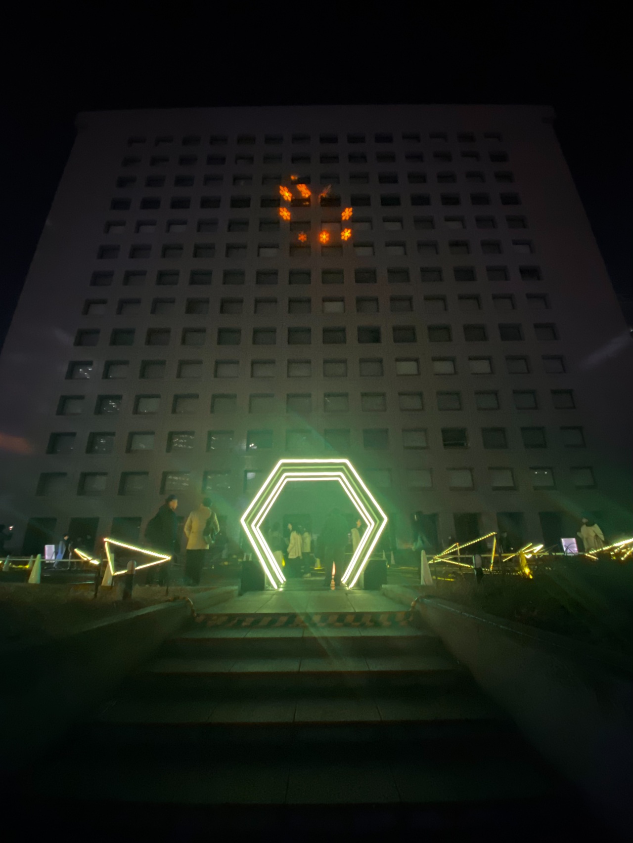 イベントを手がけたクリエイティブチームの方によると、「仕事帰りに下を向いてスタスタと帰るだけの何でもない道で、このXRイルミネーションを通してふと見上げ、光と音のリズムに癒されてくれたら…」という想いが込められているそう。