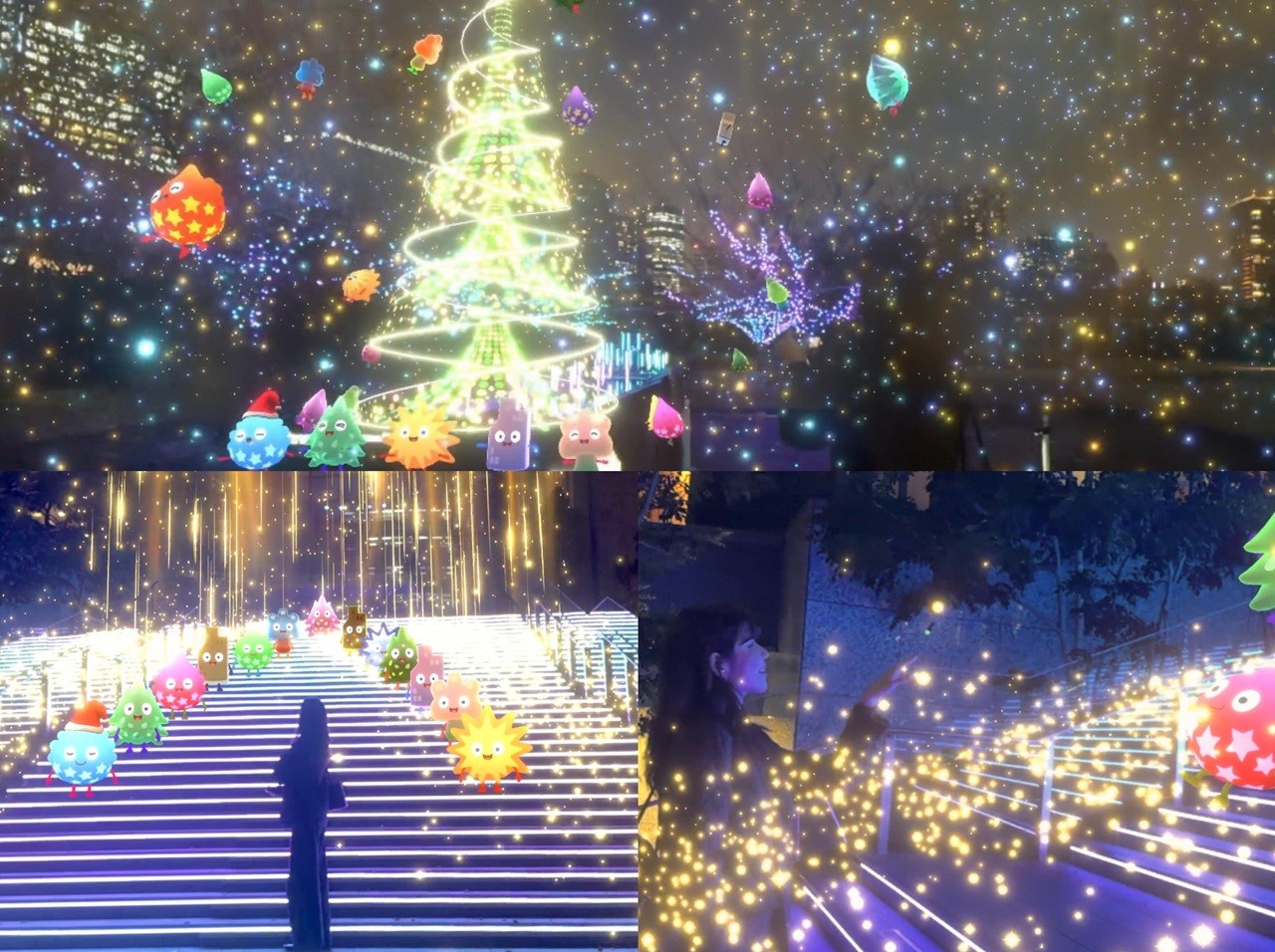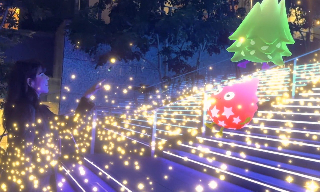 スマホアプリを使って、リアルな街にデジタル演出が重なる“XRイルミネーション”を体験できちゃう、なんとも新感覚でワクワクする空間♡