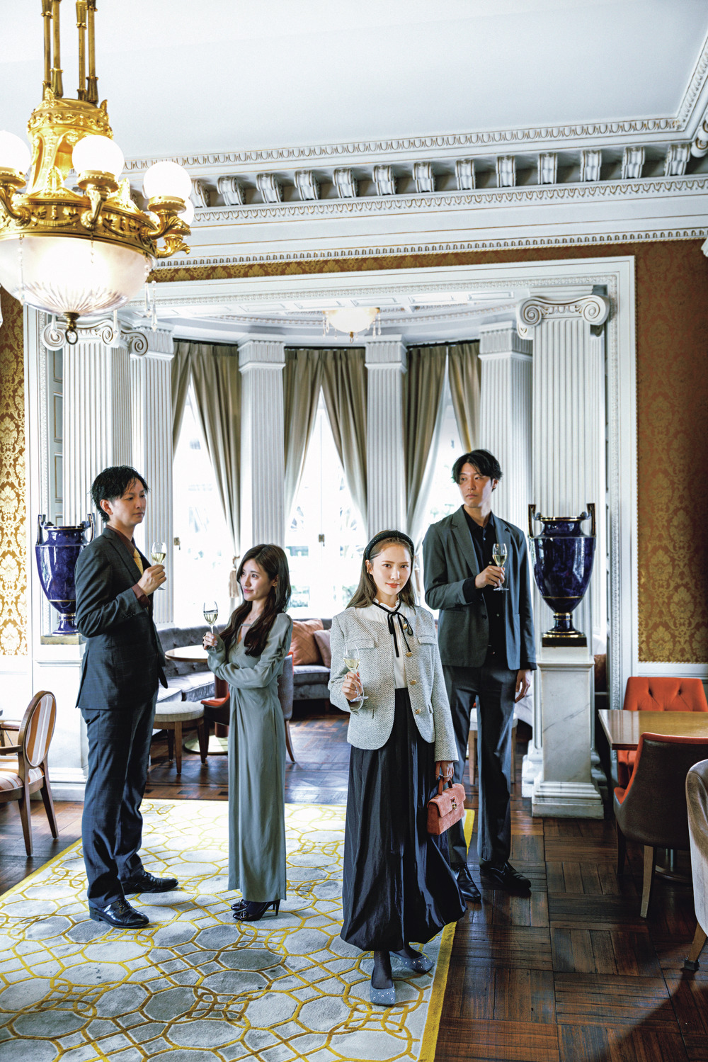 端正なブラウスを仕込んで華やかツイードも品格UP!
