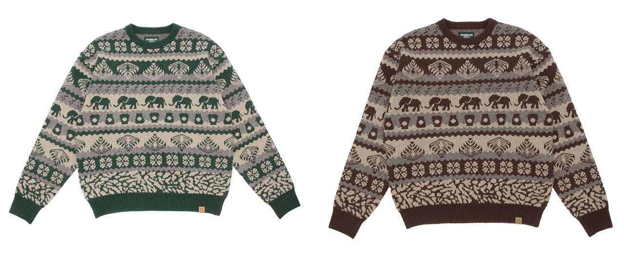 ジャカードクルーニットは、オリジナルの柄を制作し、ジャガードで表現した5GG ウールニット。アフリカゾウやラテアート、スターバックスのカップやコーヒー豆が遊び心たっぷりに描かれています。裏針抜きのウールジャガード編みにすることで、メランジ感もありつつ発色を良くさせオリジナル柄をはっきり表現。また、ウール100%による膨らみと触り心地の良さが高級感のあるアイテムに仕上がっています。シルエットは、肩幅と身幅にゆとりを持たせ、袖口・裾はリブ仕様、またネックはできるだけ身体に沿わせるように設定しメリハリのあるシルエットに調整。XS〜XL までの5サイズ展開だから、自分好みのシルエットで着用を楽しんで。