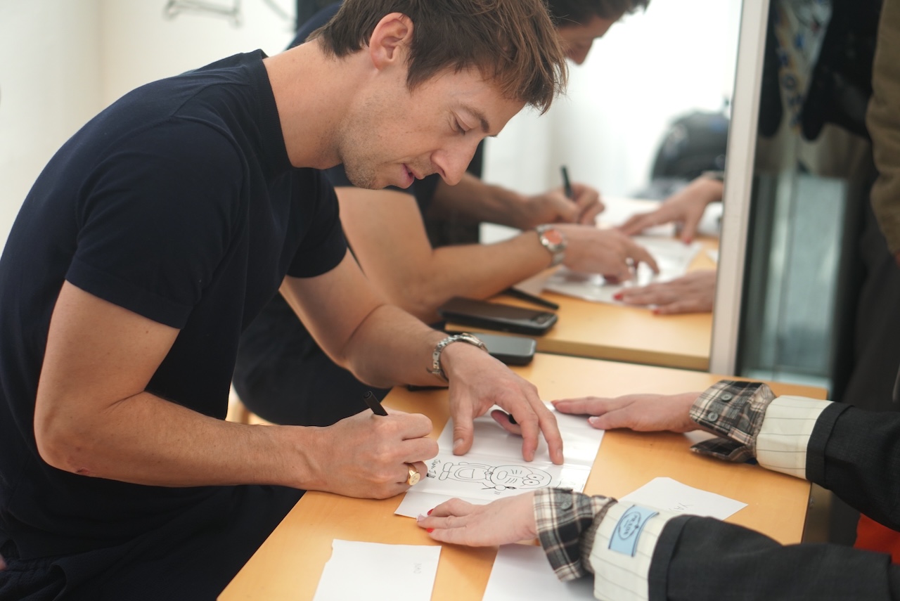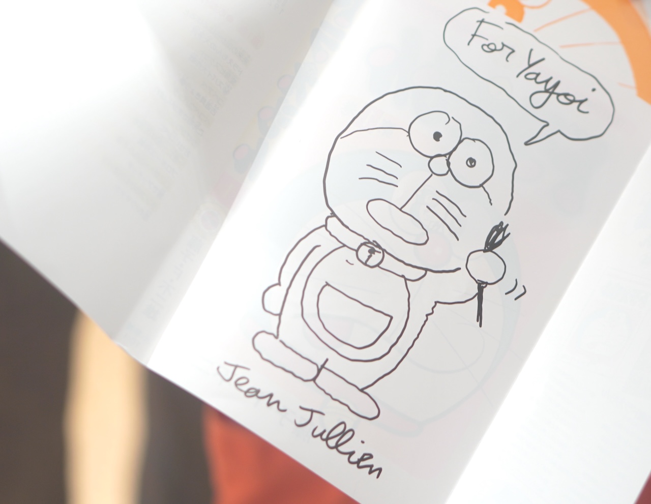 ジャン氏のファンが集い、サイン帳や今回発売のグッズ、ドラえもんのコミックスなど、希望のアイテムにサイン。なんとジャン氏がそのときのインスピレーションをもとにしっかりイラストを入れ、世界にひとつの記念品が次々と完成していきました。