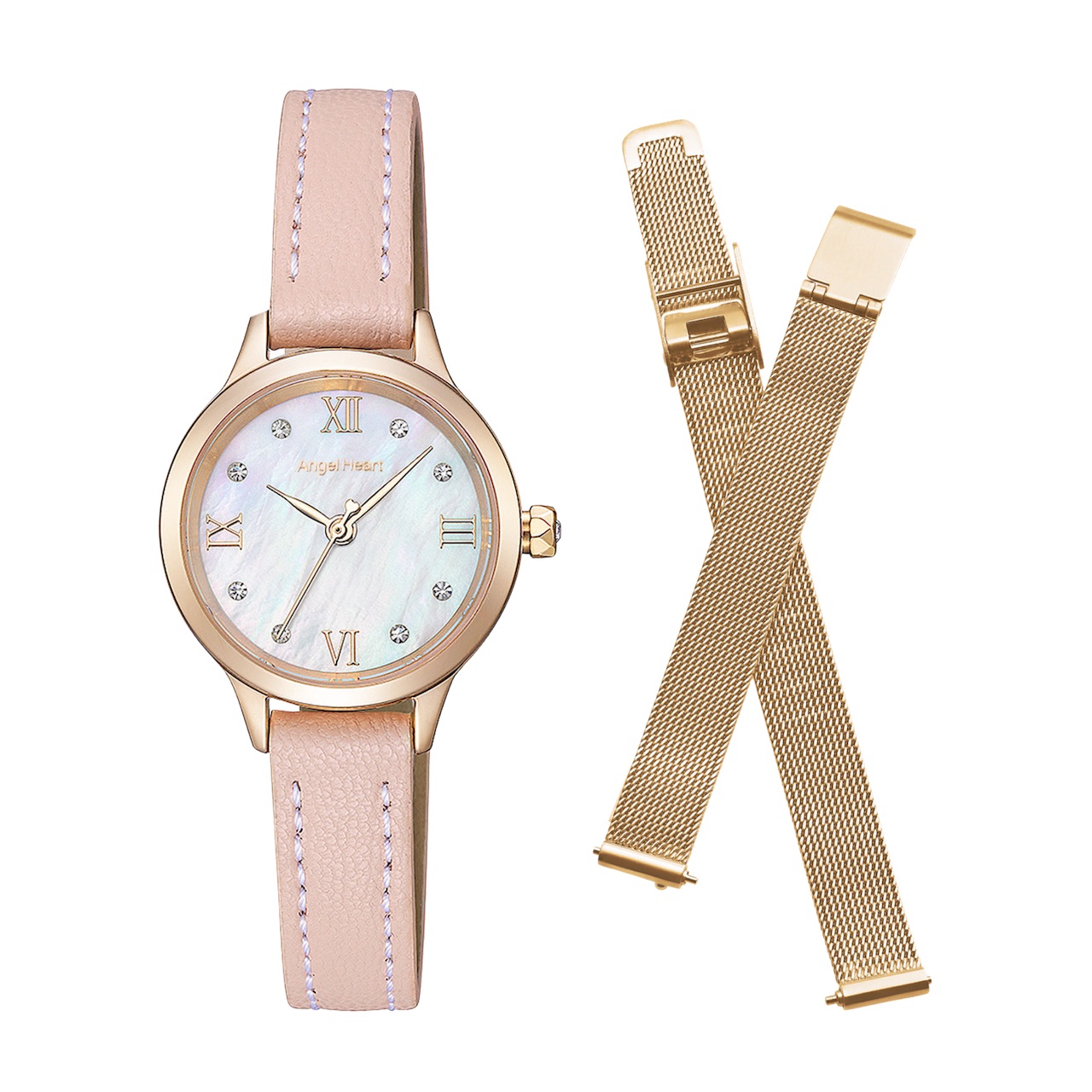 よ~く見ると、秒針がハートモチーフになっているソーラーウォッチ。時刻を見るたび目に留まるハートが幸運を引き寄せてくれる予感。簡単に付け替えできるレザーとメッシュの2種類のベルト付きで、その日の気分やコーデに合わせてアレンジが可能。