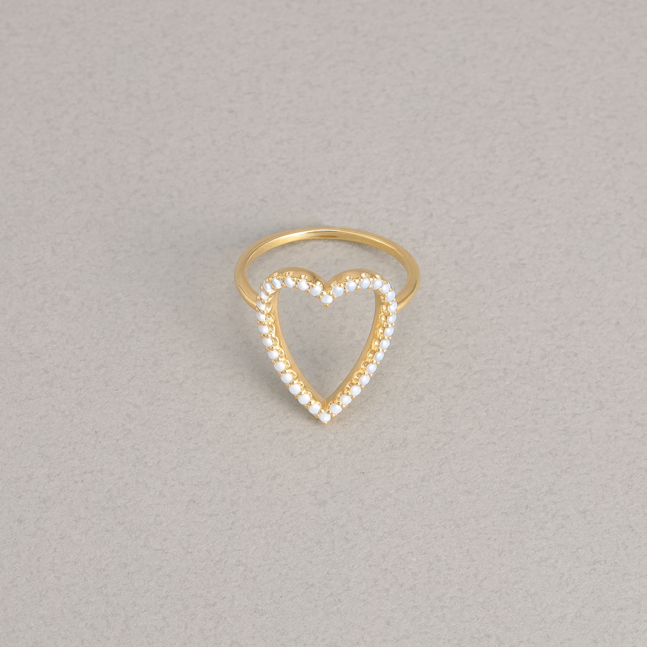 14Kゴールドでコーティングされたハートシェイプリング。表面にはイニシャルや手書きのイラストなど、好きなメッセージを刻むことができるので、自分だけのカスタマイズリングをつくることも。サイズ展開も豊富でギフトにもぴったり。