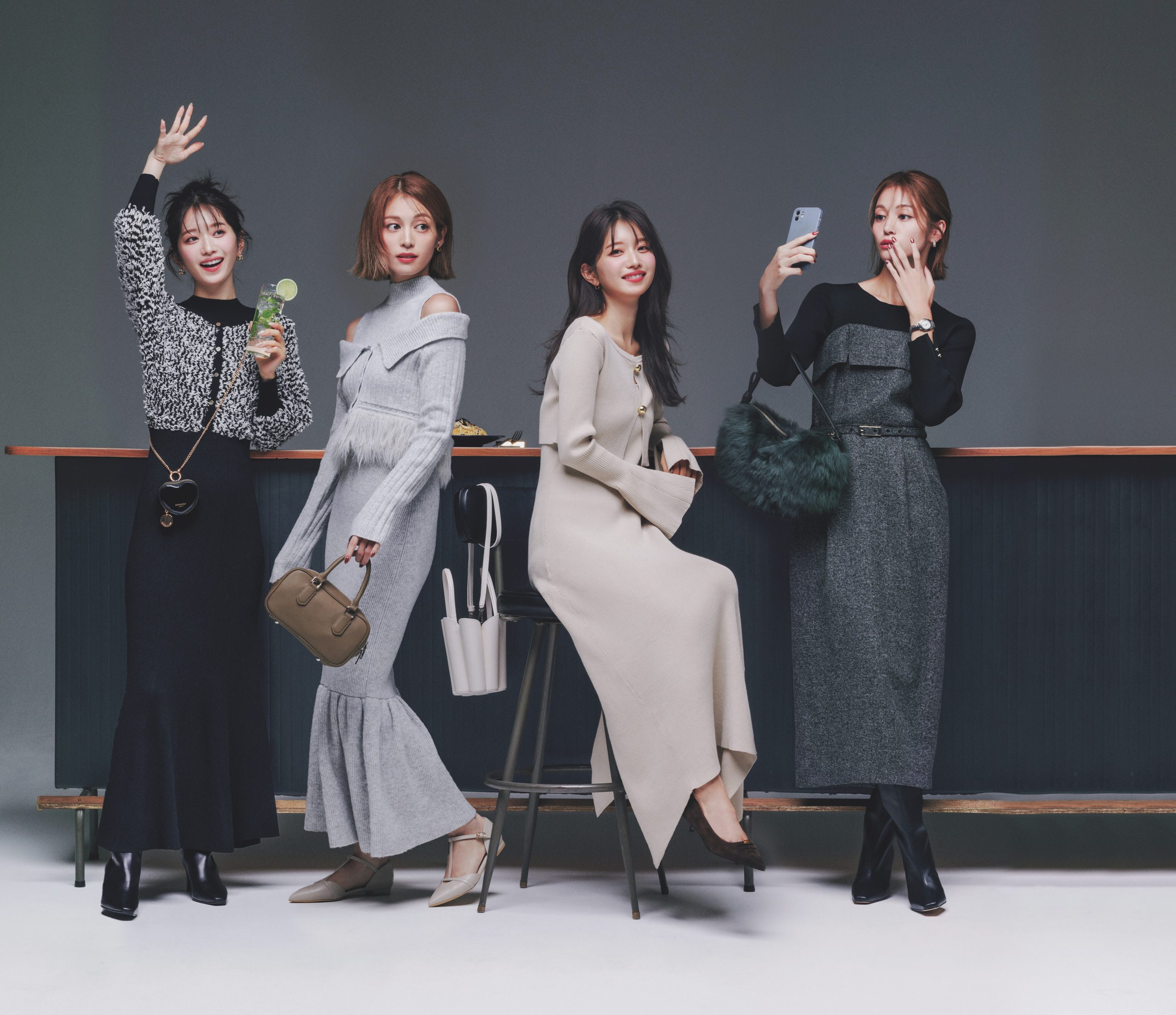 外出が増える年末年始は、相思相愛なハイスツール×ニットワンピで、ちょっと大人な気分を楽しんでみては♡ 後編では、美人見え立体フォルムワンピとこなれ感のある襟付きワンピをお届けします。お楽しみに!
