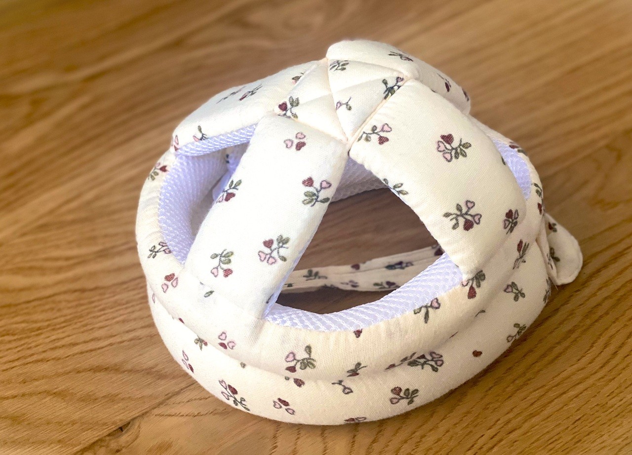 ハイハイやつかまり立ちを始めた、生後半年頃から活躍するのがベビーヘルメット。ヘッドガードや“ごっつん防止”ヘルメットとしても知られ、転倒しやすい時期の心強い味方です。