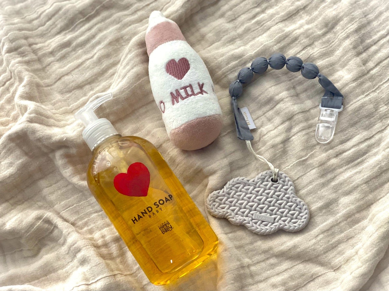 そんなACTUSでは、センスの光るベビーアイテムも豊富に揃っていて、プレゼント探しにもぴったり。私はハンドソープ・ラトル・歯固めの3点を姉の出産祝いに贈りました。