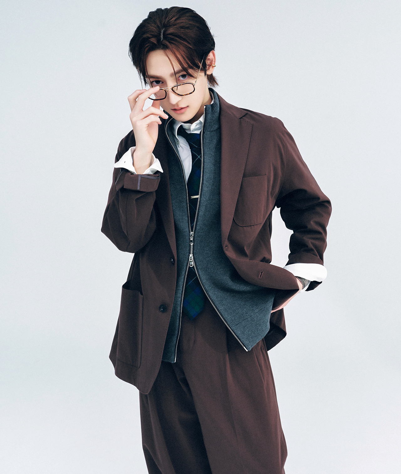 高校卒業後はボーカル専攻の音楽の専門学校へ。いよいよ本気で音楽を仕事にできるようにしなくちゃ、と本気度が高まりました。在学中に一度だけ韓国で練習生生活をさせてもらって、意思疎通が難しい中パフォーマンスを仕上げるという、難度の高いミッションを初めて経験。それからオーディションもいくつか受けましたが、特に中国のオーディション番組に出演したときは、人生でいちばん心を折られましたね…。自分の人気が可視化されて、パフォーマンス後にスクリーンに自分の票数が出るんですけど、人気のコとの信じられないくらいの票差を目の当たりにするのは、さすがに心にくるものがありました。当時事務所のスタッフが中国まで応援に来てくれていたので、泣きついたことも。でもそのときも路己が一緒で心強かったし、そこで粘り強く頑張ったおかげで、メンタルが鍛えられたと思っています。中国から帰国した後は、無心で歌の練習をしていました。その後、『timelesz project-AUDITION-(以下タイプロ)』の開催を知り、受けさせていただくことに。既存グループへの加入という今までにない形でしたが、皆さんがすごく丁寧に僕たちのことを迎え入れてくださったので、番組期間中はノンストレスに過ごせましたし、候補生たちともライバルというより仲間意識が強く、高校時代を思い出すような、〝青春〟でした。