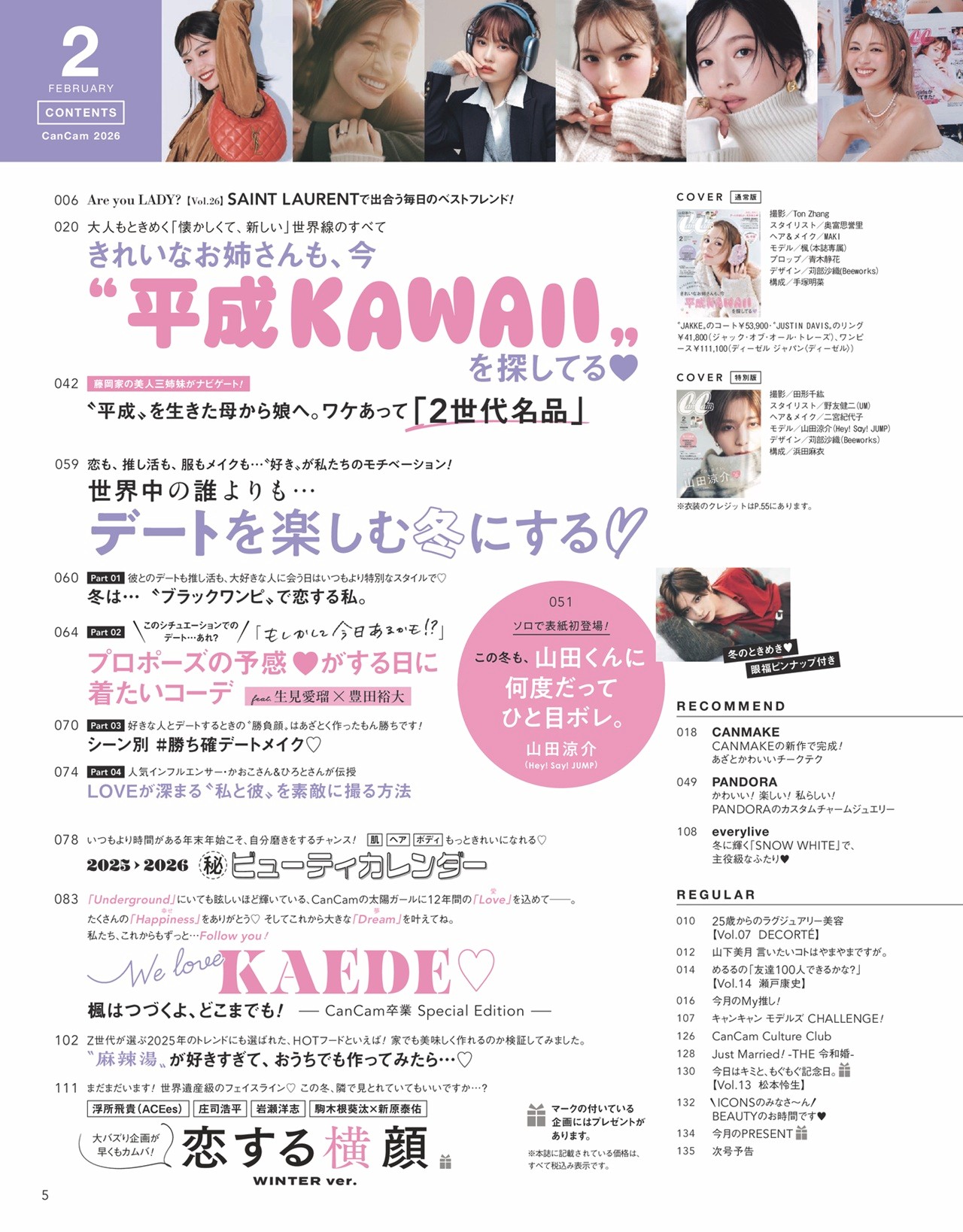 誌面では、楓のCanCamヒストリーをプレイバック。本人コメント&当時のスタッフの証言で数々の名企画を振り返るほか、これまでとこれからを語り尽くすロングインタビューもお届けします。