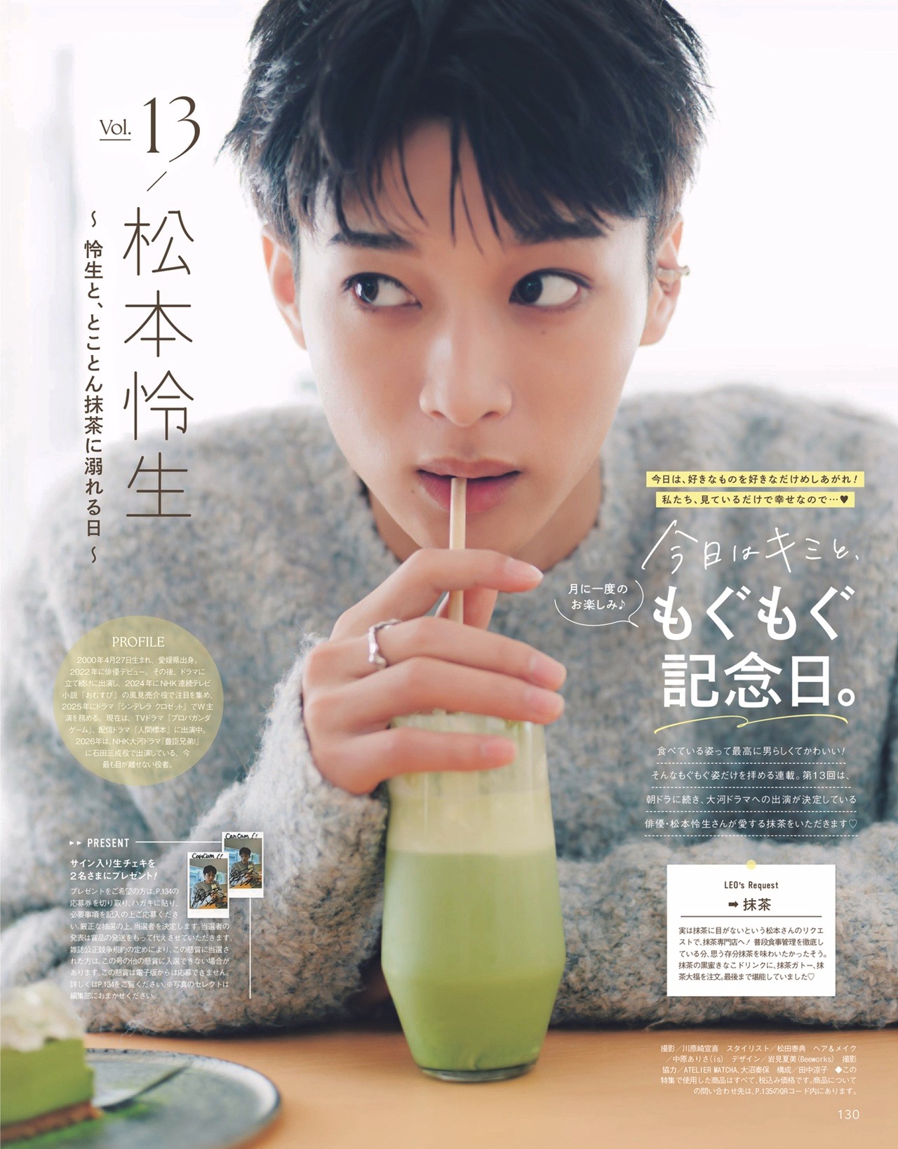 第13回は、朝ドラに続き、大河ドラマへの出演が決定している俳優・松本怜生さんが愛する抹茶をいただきます♡