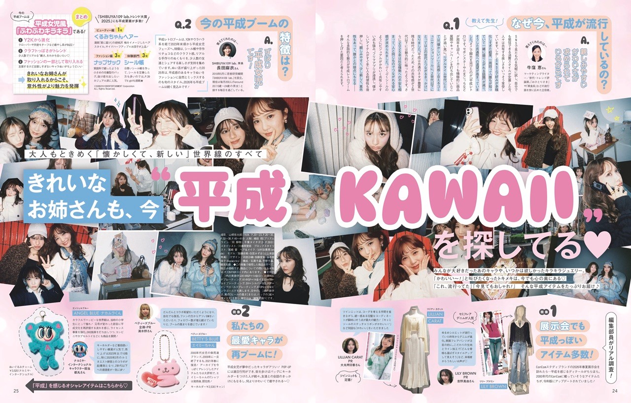 キラキラビジューアイテムやスニーカーデコなどのファッションから、ふわふわ編み物キット、大人のシール交換といった、1周回って今こそ新鮮な注目トレンドまでたっぷりご紹介。「これ、流行ってた!」「今見てもおしゃれ♡」そんな〝平成KAWAII〟を、計22ページの大ボリュームでお届けします!