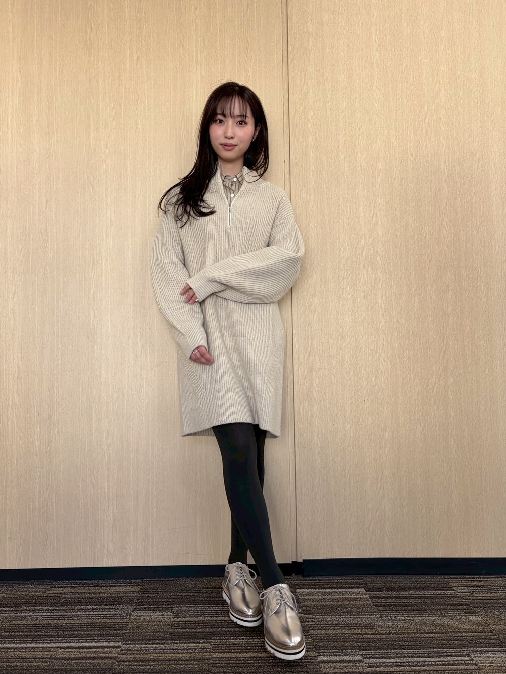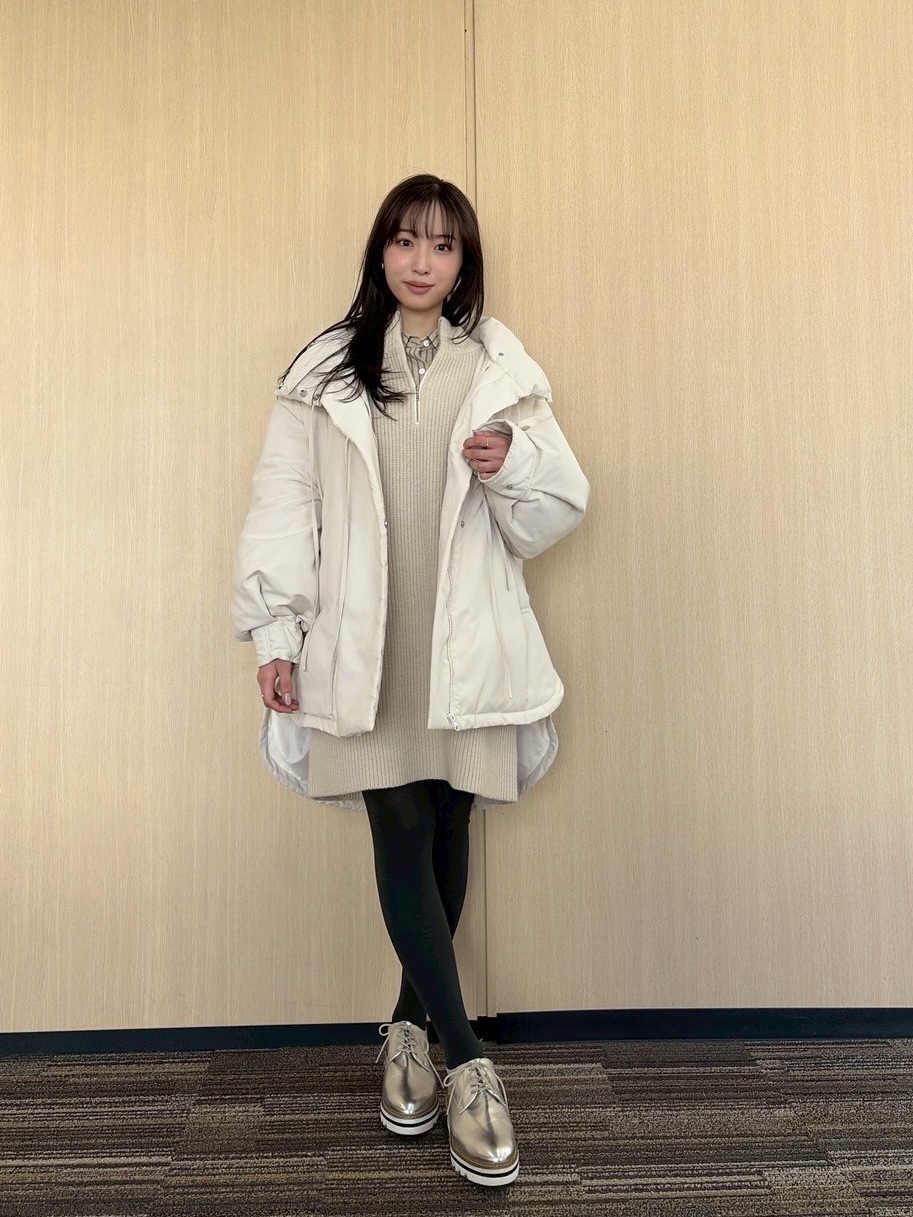 ■12/23(火)/アイボリーダウンコート×ベージュニット