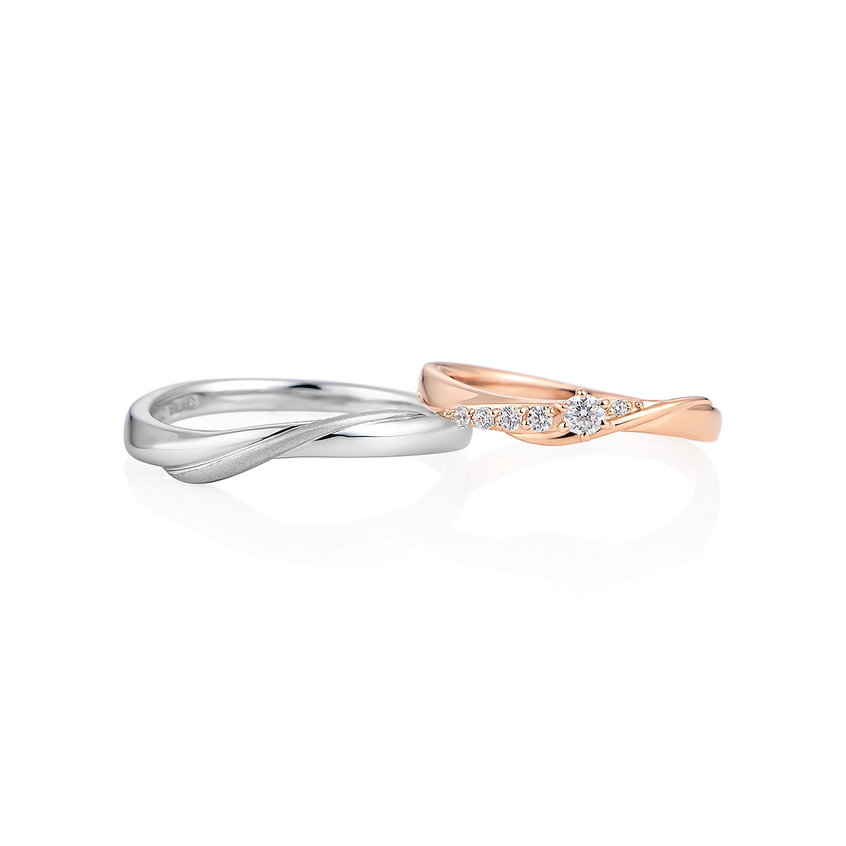 ふたりを照らす特別なきらめきをテーマにした限定ペアリングは、永遠を象徴するダイヤモンドをセッティング。ふたつのリングを合わせると内側にハートの刻印が現れるデザインは、ペアジュエリーならでは♡