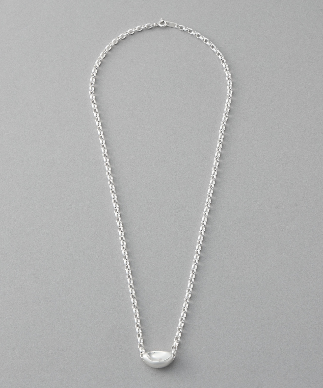 eteのシェアコレクションに、オブジェのような造形が魅力のデザインが登場。ぽってりと丸みを帯びたフォルムに、シャープなラインが映えるようアウトラインにこだわったネックレス。シルバー925ならではの、明るくピュアな輝きがそのフォルムを引き立てる!