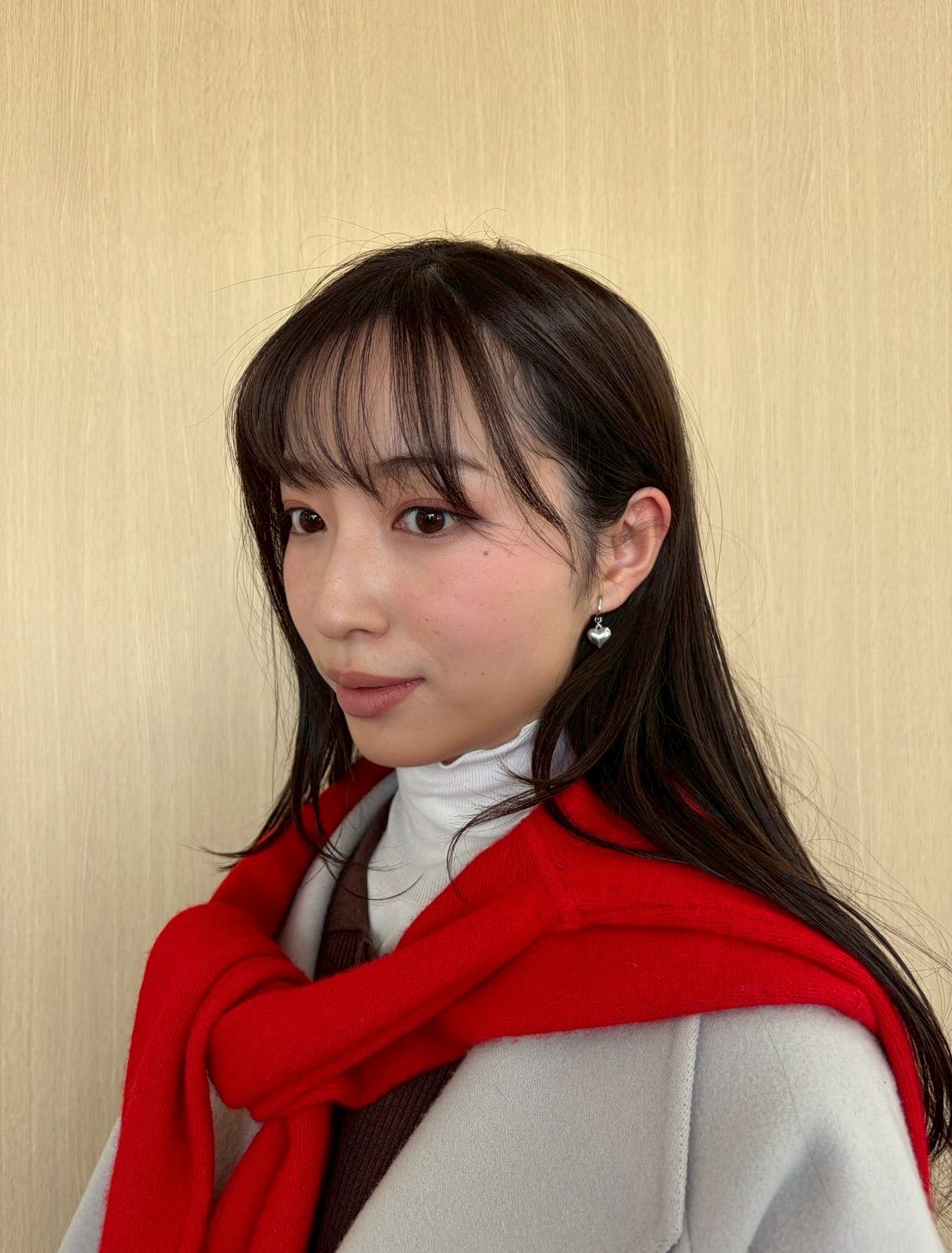 本日の林さんのコーデは、クリスマスカラーの赤が効いた上品なコーデです♡