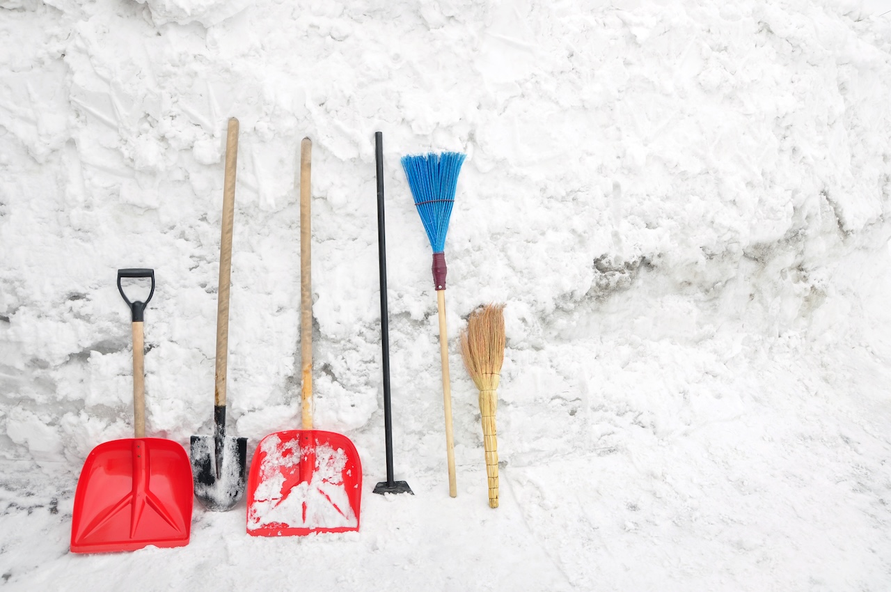 学校に登校したら昇降口の前で箒を持った「雪払い係」がいる