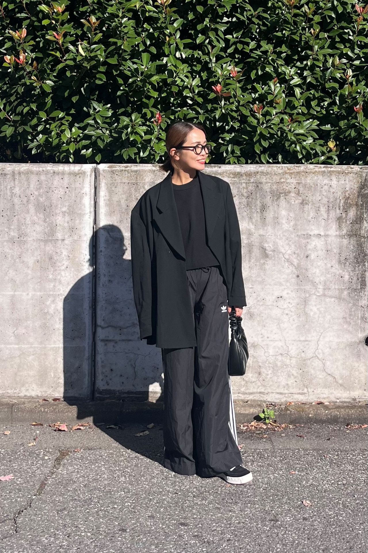 ラクしたいけど、ちょっとはちゃんとして見せたい。そんな日に活躍するのが、アディダスの黒トラックパンツ×テーラードジャケットの組み合わせ! ジャケットのインナーは、カットやニットなどシンプルでOK。トラックパンツの抜け感を、ジャケットで引き締めれば、“頑張ってないのにきちんと見える”バランスが完成。足元はスニーカーでもブーツでも今っぽく決まります。