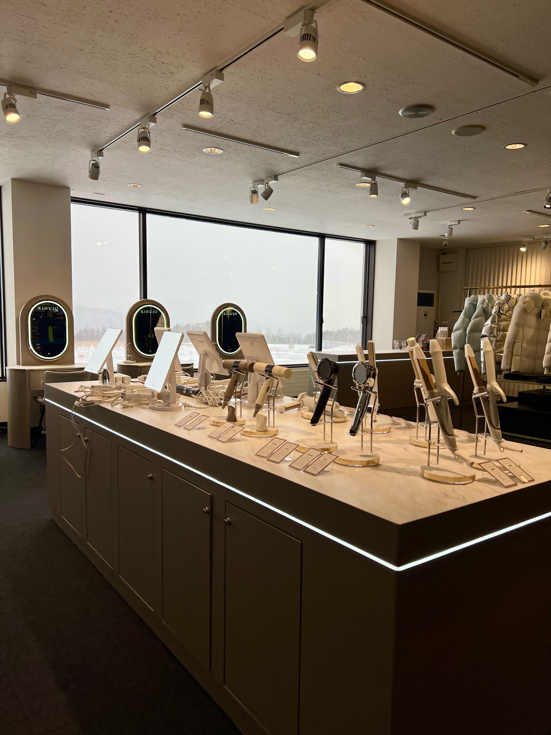 雪山のリゾート内に、KINUJOの最新ドライヤー・アイロンを自由に試せるサロンが登場! 女優ライト付きのドレッサーでスキー前後の身支度が、特別な時間に変わります♡