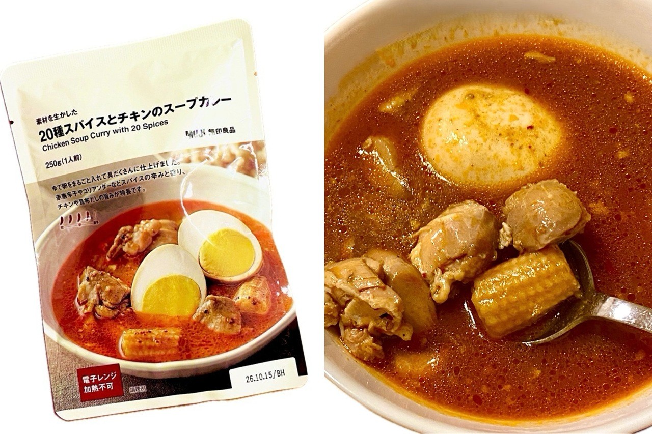 そんなおうちメニューにおすすめしたいのが、「無印良品のスープカレーシリーズ」。スパイスの効いたスープが冷えた体に染み渡るうえ、野菜やお肉がごろっと入っていて満足感もばっちり。温めるだけで完成するレトルトの手軽さもあって、「時間はないけど、しっかり食べたい」という忙しい日々にも重宝するんです!