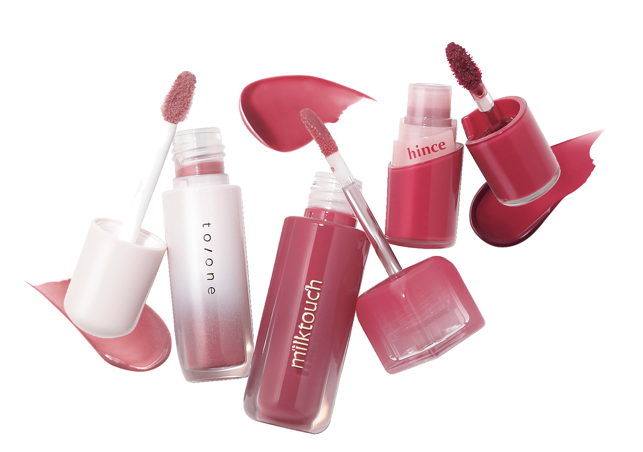 【右・モデル使用色】鏡なしでも塗りやすく、色とツヤが持続。持ち運びしやすいミニサイズもうれしい。hince ロウグロウジェルティントミニ R020 ¥990