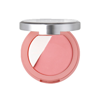②Bのアイライナーでインラインを引き、ブラックマスカラを上下にたっぷりと。上まつげは持ち上げるように塗る。Cのコーラルチークを内側から放射状にふんわり入れ、ローズピンクリップは少しオーバーにカジュアルに塗り、立体感を出して。