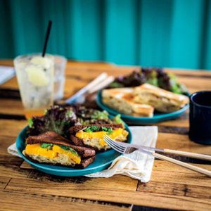 ホットサンドが人気のスタイリッシュなカフェ。アメリカンな雰囲気で写真映え確定!
